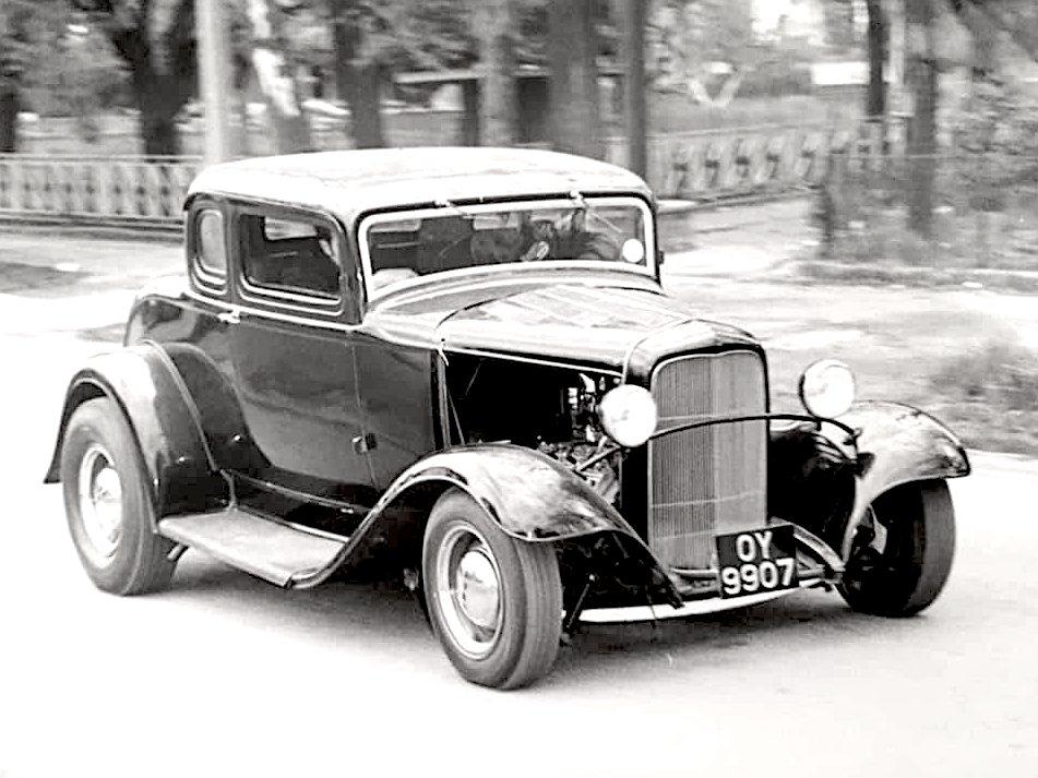 The seller was asking £200, but Brian only had £100 in his pocket, pleading his case, the seller finally relented and agreed to sell. Brian brought it home straight away and the work began to turn it into a hot rod. It was fitted with a Jaguar rear bumper and an Austin A55 front bumper as Brian couldn`t find any original '32 bumpers. For running gear he purchased a Allard Flathead v8 coupe & used the front juice brakes, rear axle and also the Flathead V8 as the coupe was a Model B four banger engine.